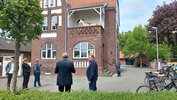 Nach ein paar kühlen Getränken ging es weiter zur Alten Schule nach Höngen wo bereits Ratsfrau Maria Goertz und der Vorsitzende des Kulturhauses Höngen Gottfried Engendahl auf die Gruppe wartete. Neben einer Führung durch das Gebäude stand auch der Besuch der Kunstausstellung, die an dem Nachmittag dort stattfand, auf dem Programm.