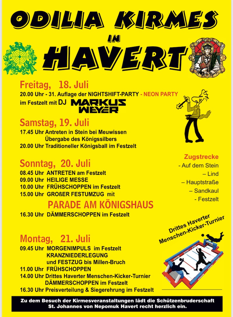 Pressemitteilung zur Odiliakirmes in Havert vom 18. bis 21. Juli