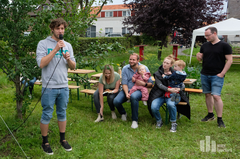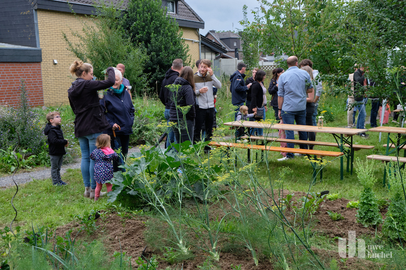 Am Samstagnachmittag wurde der Dorfgarten in Saeffelen erfolgreich eröffnet. Die durch Ortsvorsteher Werner Joerißen initiierte Interessengemeinschaft "Klima, Natur und Umwelt Saeffelen" konnte auf einem privaten Grundstück eine grüne Oase mitten im Ort neben dem Spielplatz verwirklichen: Zwei Hochbeete aus Trockenmauern, Obstbäume und -Sträucher, ein Gemüsebeet und Wege wurden neu angelegt, eine Blumenwiese mit regionalem Saatgut eingesät und eine artenreiche Hecke gepflanzt. Das Gemüse und Obst steht der ganzen Dorfbevölkerung kostenlos zur Verfügung und darf gerne (gegen ein bisschen Gießen oder Unkraut zupfen) geernet werden! Die Initiatoren bedanken sich bei Gülsen Litherland vom Quartiersmanagment und Bürgermeister Norbert Reyans für die Unterstützung aus Fördergeldern, sowie Herrn Herbert Ohlenforst, der stellvertretend für seinen verstorbenen Bruder Erwin der Eröffnung beiwohnte und das Grundstück weiterhin zur Verfügung stellt. Für die kommenden Jahre sind weitere Ideen für den Dorfgarten in Planung; bald wird eine Infotafel am Garten über anstehende Aktionen, Erntezeiten und Kontaktdaten informieren!