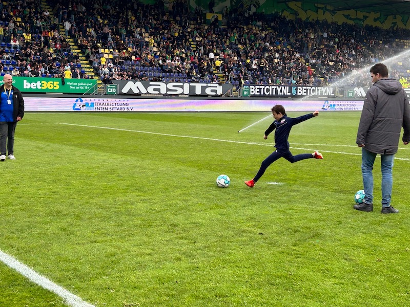 Damit verbunden war die Möglichkeit in der Halbzeit aufs Spielfeld zu dürfen, und dem Ersatztorwart Tom Hendriks einige Elfmeter „um die Ohren“ zu schießen und im Anschluss daran eine Ehrenrunde durchs Stadion zu laufen.