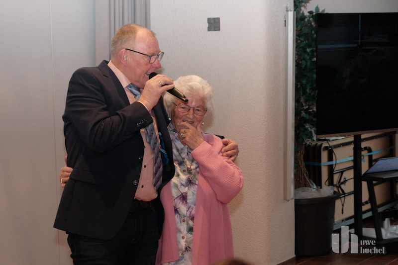 Zwischen den Auftritten war genug Zeit miteinander zu plaudern. Als kleines Highlight würdigte Ortsvorsteher Frank Köhnen Maria Huben (93 Jahre ) und Hans Schlebusch (94 Jahre) älteste anwesende Schalbrucher mit einem Präsentkorb.