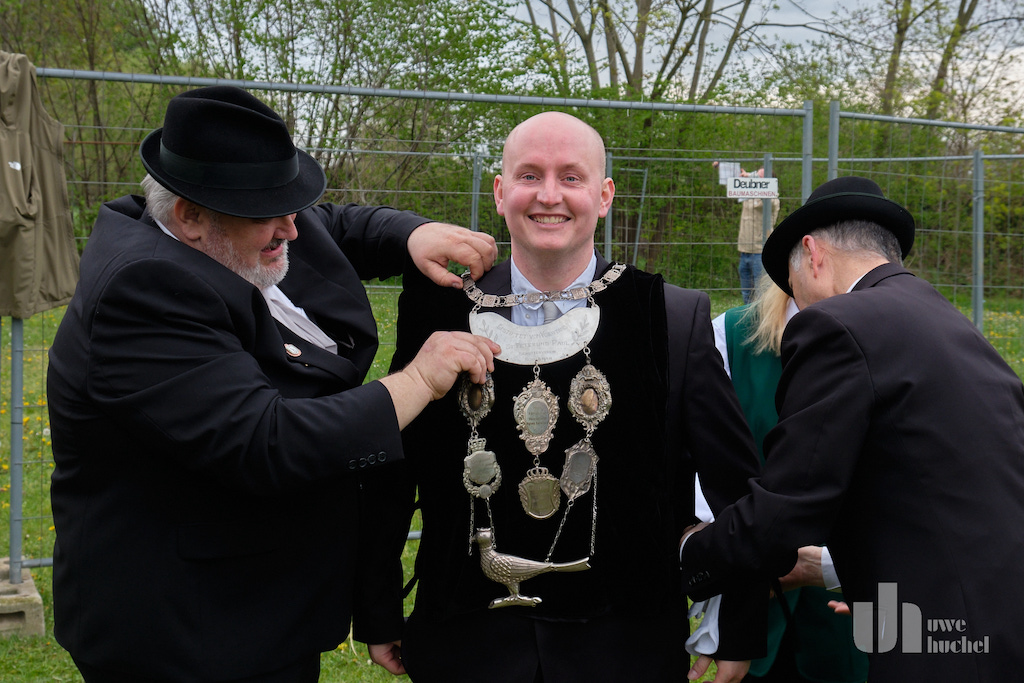 Seit 3 Jahren wohnt Garett Stinson mit seiner Frau Michele im Selfkant und seit einem Jahr ist er Mitglied bei der St. Peter & Paul Schützenbruderschaft in Schlabruch. Mit 233 Schuss errang er heute die Königswürde von Schalbruch. Bei den Damen war Monina Küsters mit 317 Schüssen erfolgreich, Fabien Backhaus benötigte bei den Jüngsten nur 63 Schuss. Ralf Knarren wurde mit 48 Schuss Vereinsmeister.