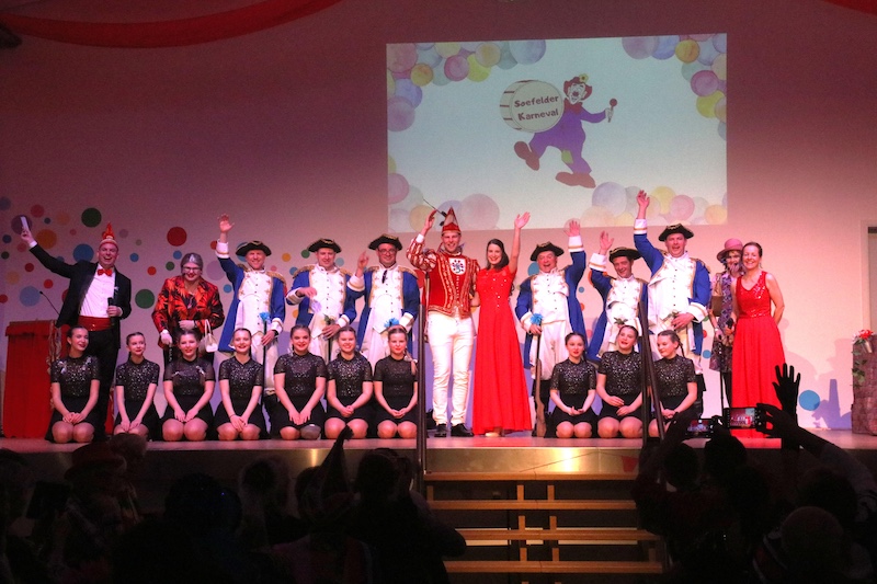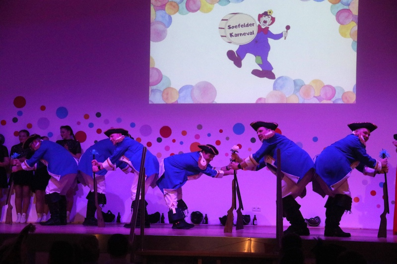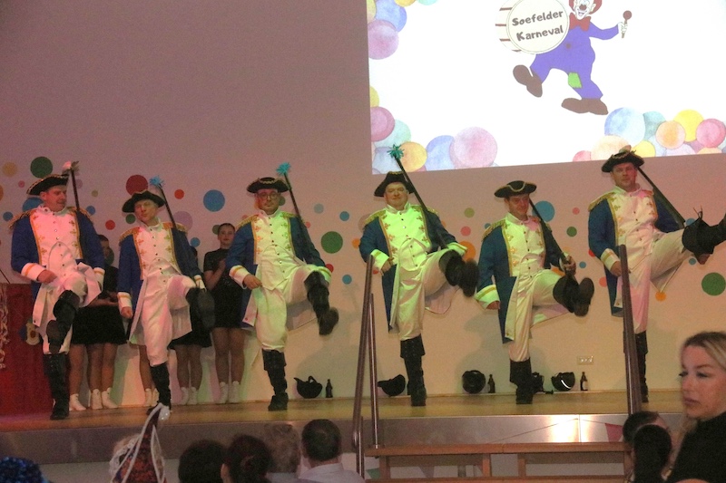 Wie Bernd Clemens als Hauptmann der Schützen (Büttenrede), Elke Clever und Martina Nolte - als Groupies der Stadtgarde. Die strammen Burschen der Stadtgarde kündigte die neue Tollitäten an. Erstmals in der Soefelder Geschichte wurde ein Prinzenpaar mit Oliver und Anna Jansen vorgestellt, die Proklamation war ein Highlight. Es gab viele weitere Highlights einer gelungenen Karnevalsshow. Als Sitzungskapelle spielte der Musikverein Saeffelen auf. Für ein fulminantes Finale sorgte an beiden Tagen die Band Rabatz – es folgte die zweite Show im Anschluss.
