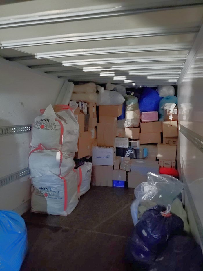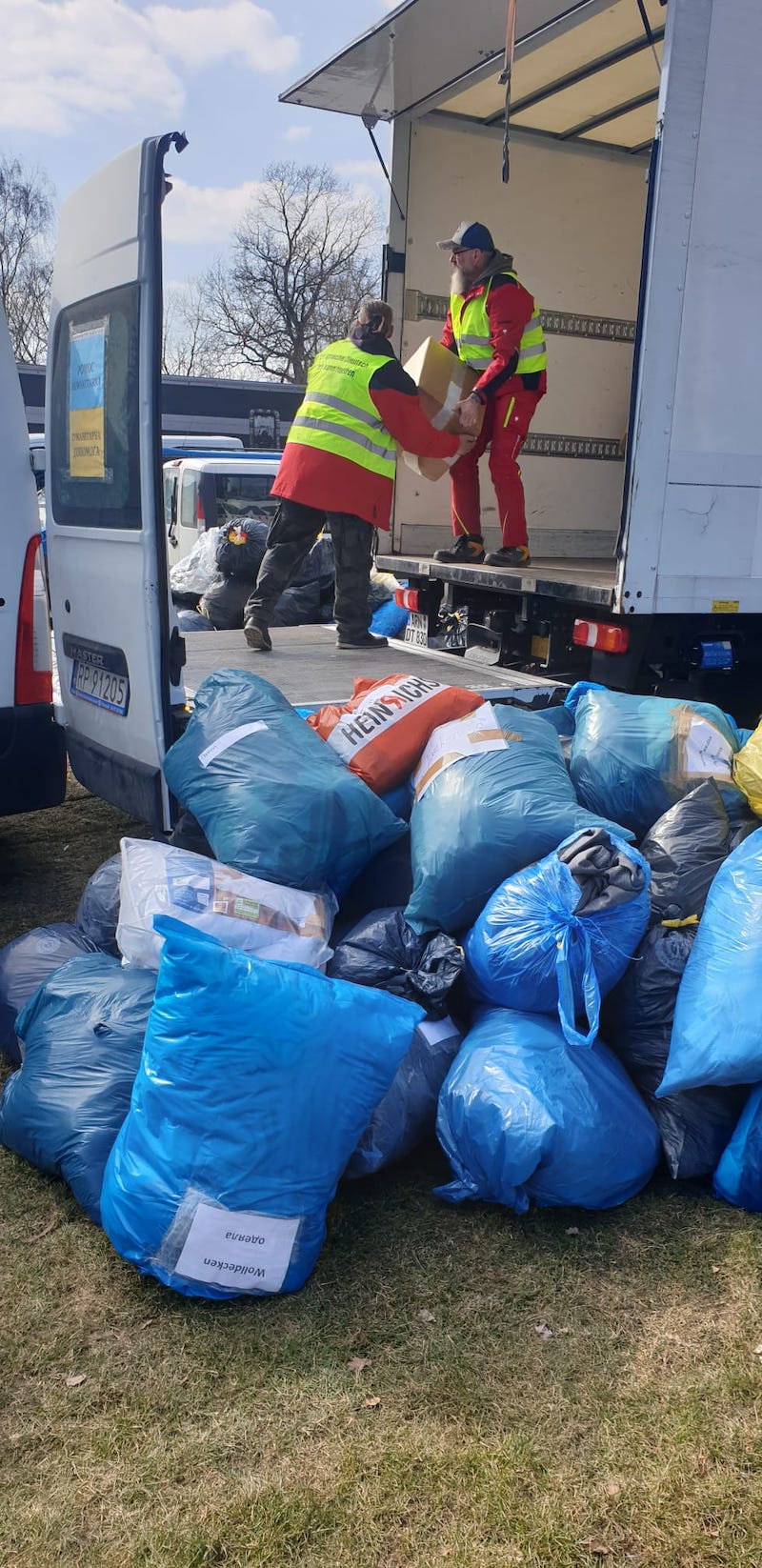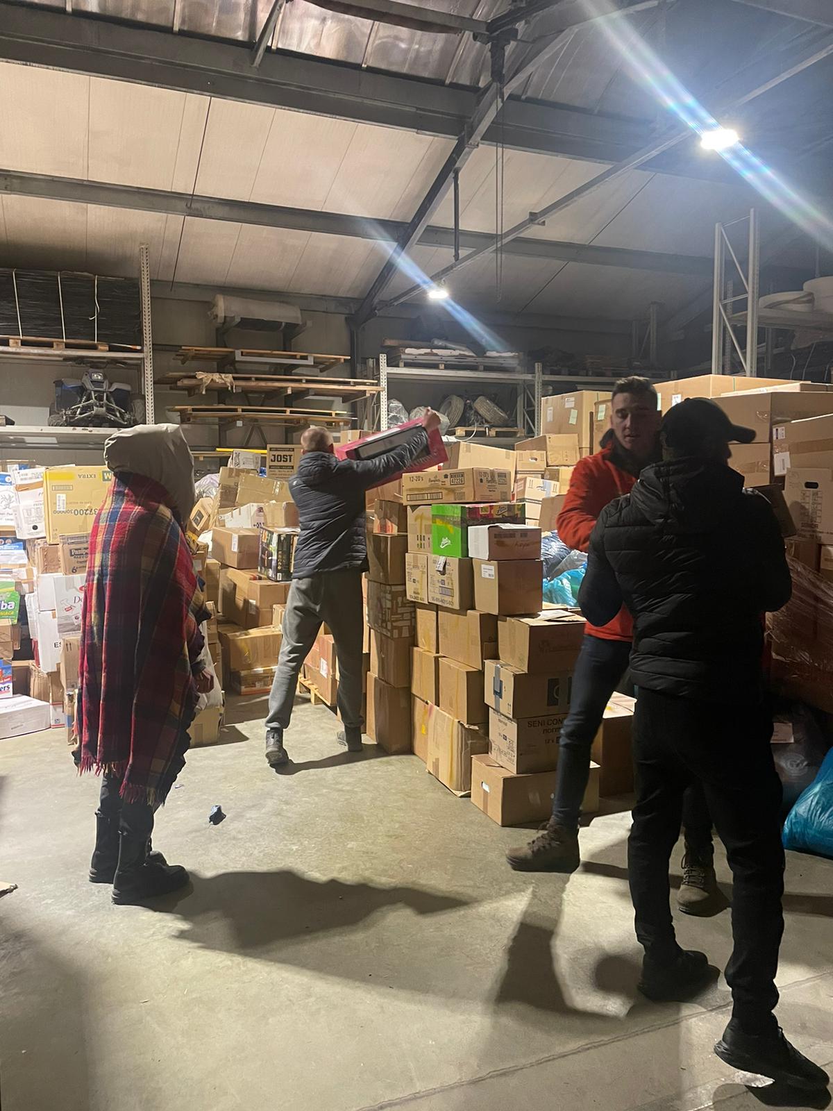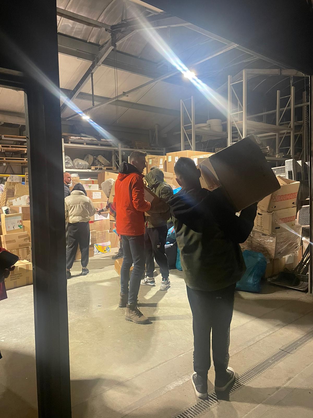 Christian Meures, der kurzfristig einen Transporter zur Verfügung stellte und selbst fuhr, postete uns heute morgen (13.3.) ein Foto vom Umladen der Spenden. Die Situation vor Ort war angespannt und viel Zeit zum fotografieren war nicht..