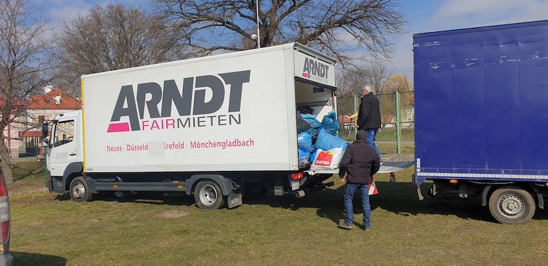 Heute fahren zwei weitere Hilfstransporte mit Sachspenden, beladen aus dem Selfkant, an die polnisch ukrainische Grenze. Svitlana Engels und der Gewerbeverband Selfkant bedanken sich recht herzlich für die schnelle und kostenlose Bereitstellung von Fahrzeugen und Anhänger bei Opel Meures, Arndt Autovermietung und Bouwens Immobilien. Weiterhin geht der Dank an die Mitglieder des Gewerbeverbandes , die sich mit ihren Spenden dieser Aktion angeschlossen haben und die vielen Helfer, die beim sortieren und beladen der LKW`s spontan geholfen haben. Auch viele Privatspenden wurden bei Svitlana Engels abgegeben - allen vielen Dank dafür! Es kann noch weiter gespendet werden. Ein Spendenkonto wird in der kommenden Woche eingerichtet.