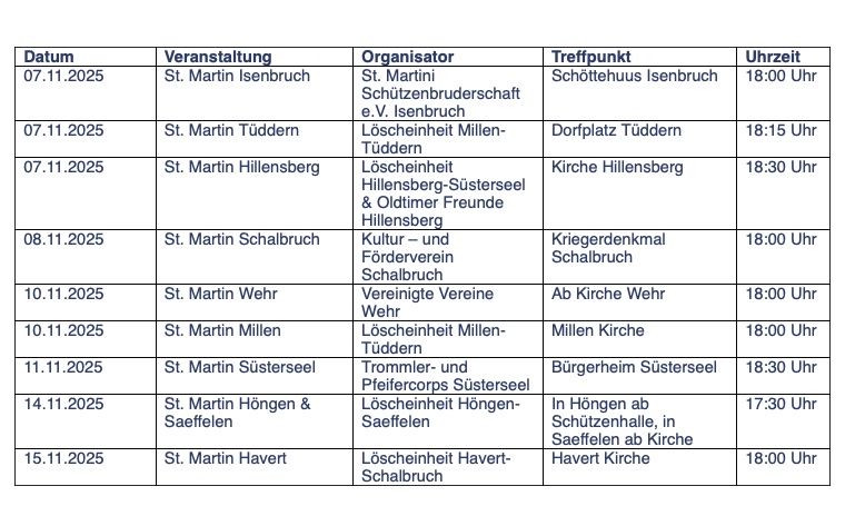 Eine kleine Änderung: der Termin in Schalbruch ist am 07.11.25.