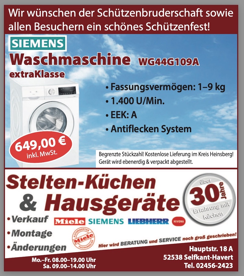 Ihr Fachhändler im Bereich Elektrohausgeräte & Küchen wünscht alles Gute zum Dekanatsschützenfest in Havert