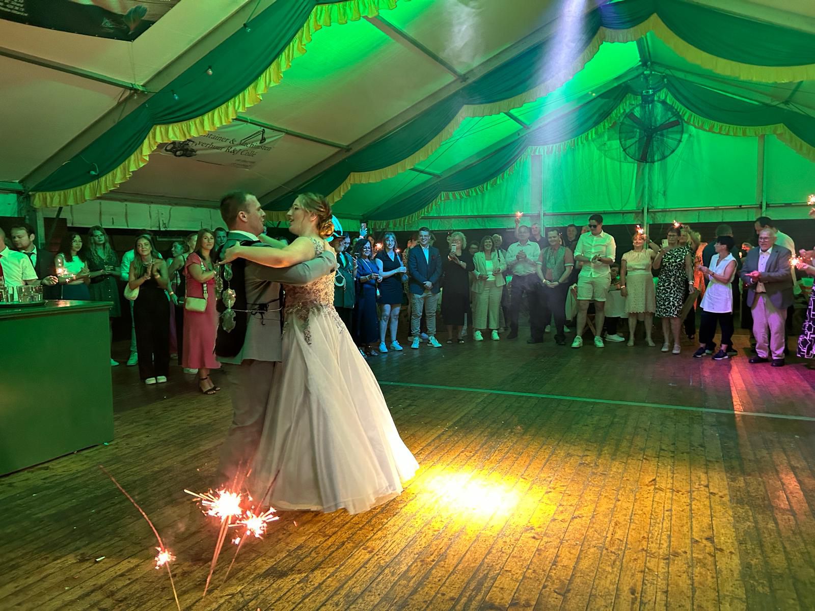 Am Abend wurde dann das Königspaar samt Ihrem großen Gefolge durch das Trommler- und Pfeiferkorps sowie den Offizieren der Bruderschaft zum Königsball abgeholt. Der Höhepunkt des Abends war schließlich der Königswalzer, den das Königspaar mit Bravour gemeistert hat.