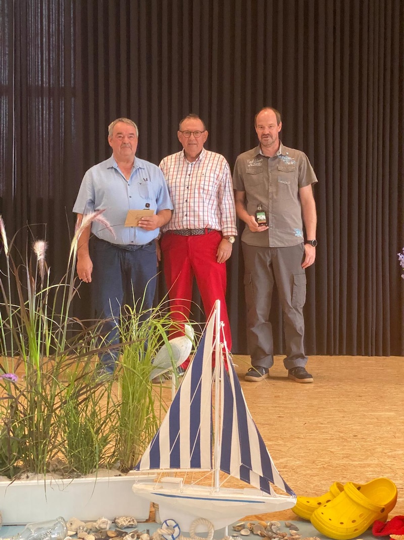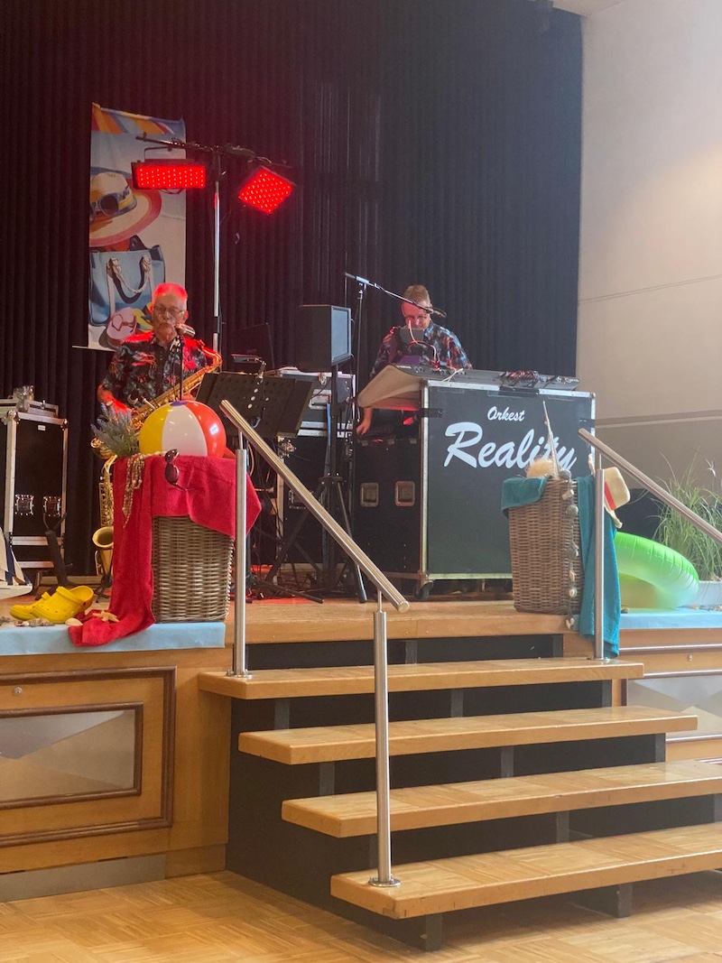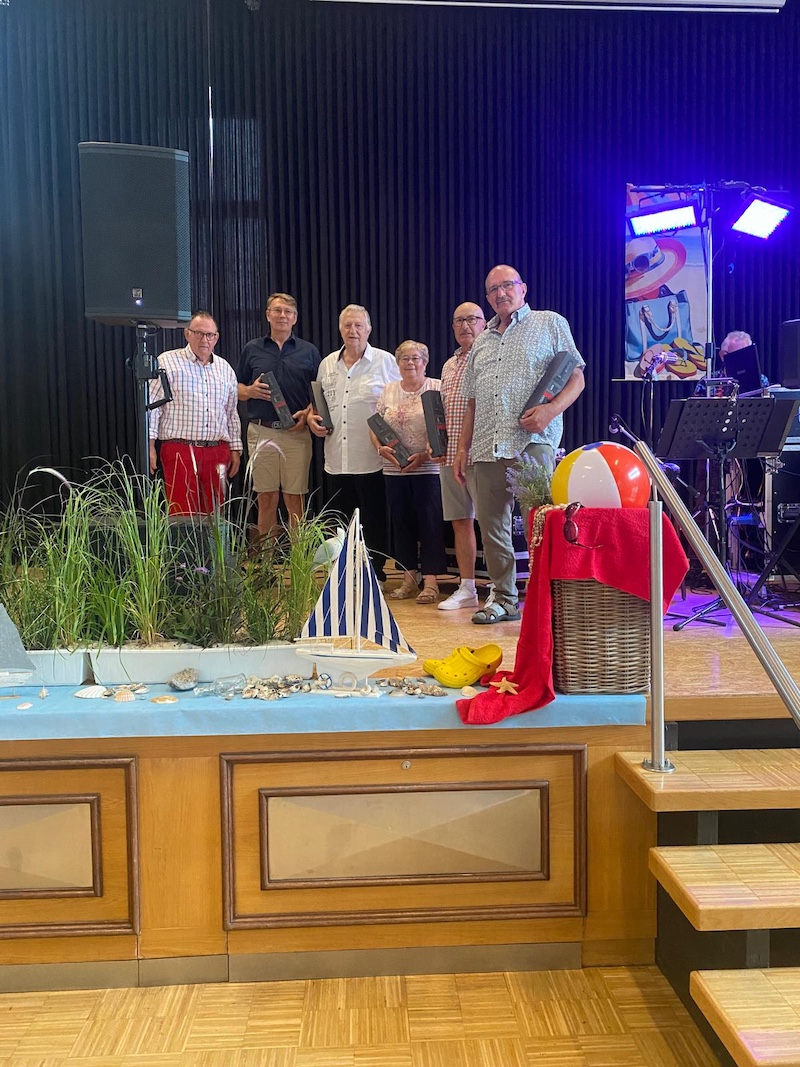 Sommer, Sonne, Strand und gute Laune – unter diesem Motto und begleitet von strahlendem Sonnenschein begrüßte der 1. Vorsitzende des VdK-Ortsverband Selfkant, Franz Lipperts, 145 Gäste zum Sommerfest 2025. Die Halle in Hastenrath war von der Deko-Expertin Ilse Kreutzer, zusammen mit ihrem Team und vielen freiwilligen Helfern, im maritimen Flair wie immer wunderschön geschmückt. Leuchtturm, Liegestuhl, Schwimmreifen und Wasserball sowie unzählige Muscheln gaben den Gästen das Gefühl einer Party am Strand. Nach einer kurzen Ansprache mit Begrüßung der Ehrengäste und Totengedenken stand eine ganz besondere Ehrung für die Herren Heinz-Peter Knoben und Sohn Sven vom Busunternehmen Knoben in Heinsberg an. Diese Herren haben viele Mitglieder des VdK Ortsverband Selfkant von 2008 bis einschließlich 2025 zu den verschiedensten Zielen innerhalb Deutschlands gebracht; immer sicher, souverän und gepaart mit sehr viel Herzblut. Heinz-Peter Knoben geht in den verdienten Ruhestand und die Herren wurden mit einem Präsent und großem Applaus verabschiedet. Danach bedankte sich Franz Lipperts bei den vielen freiwilligen Helfern mit einer Flasche Wein und einem dicken DANKE und im Anschluss wurde das Büfett eröffnet. Der Hauslieferant – Rudi Görtz aus Breberen – hatte – wie immer – ein vorzügliches Sommerbuffet gezaubert. Als Höhepunkt des Abends begrüßte Franz Lipperts die Band „Reality“. Die beiden Vollblutmusiker Heinz (Ernst) und Peter haben mit ihrem nostalgischen Repertoire zum Tanz aufgespielt. Die Gäste waren von dieser Musik begeistert und es wurde bis in den späten Abend hinein getanzt und viel erzählt. Es war wieder einmal ein gelungenes Sommerfest!