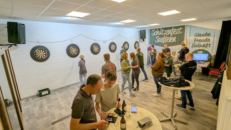 Letzen Samstag war erneut eine gute Stimmung im Saeffelener Schützenheim. Viele Vereinsmitglieder aus etlichen Vereinen aus Saeffelen trafen sich zum zweiten Saeffelener Vereins-Darts-Turnier.