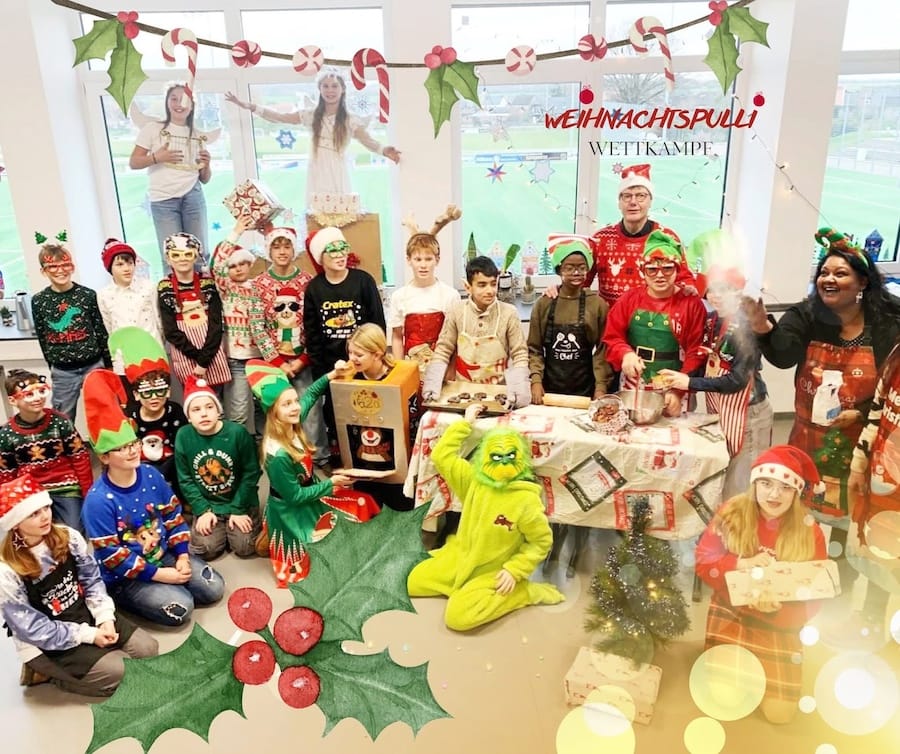 Für den Wettbewerb entwickeln die Kinder originelle Weihnachtsideen und - Kostüme und stellen sich einer Jury. Die besten Klassenkostüme werden mit einer Dönerlieferung in die Schule belohnt. Die Aktion wird durchgeführt und finanziert durch den Förderverein der Gesamtschule.