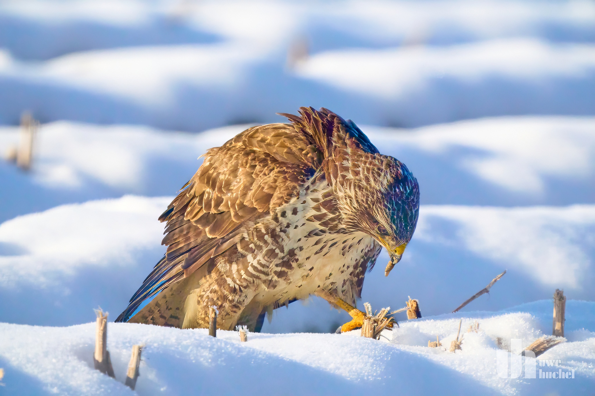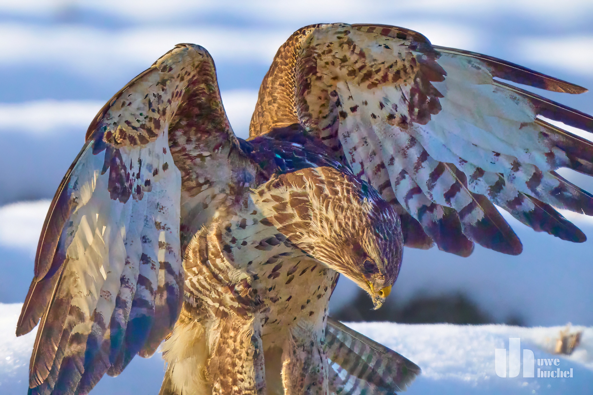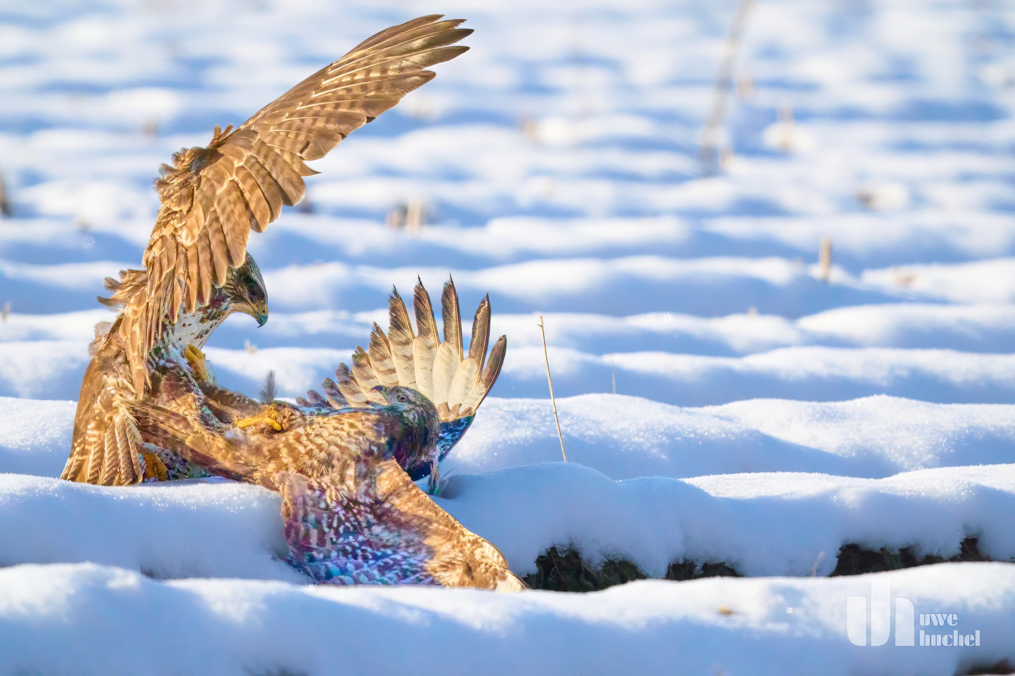 Aber es ist nicht nur der Kiebitz. Jetzt in den Wintermonaten kann man zahlreiche Bussarde beobachten. Teilzieher aus dem Norden kommen auf die Felder im Selfkant, speziell auch bei Havert. Auch Bussarde haben ihre Probleme mit den Windrädern.